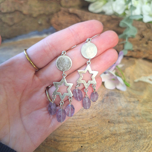 💫 Zilveren Amethist Oorbellen – Ster Facet | Elegantie & Innerlijke Rust