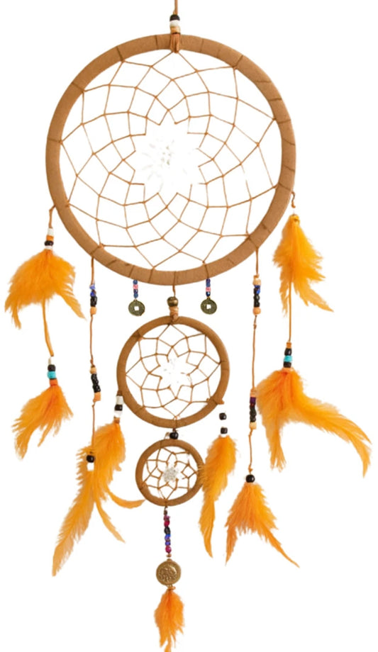 π§Ώ Dromenvanger Bruin/Oranje met 3 Ringen en Geluksmuntjes β Bescherming & Welvaart in Harmonie