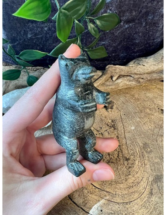 🖤 Speksteen Beer Staand Zwart – 8,5 cm