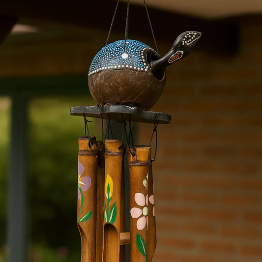 ๐ด Bamboe Windgong met Gekleurde Schildpad โ Tropische rust met een speels accent