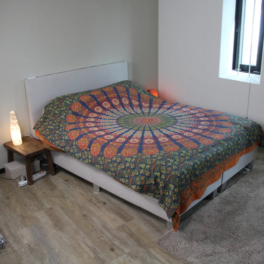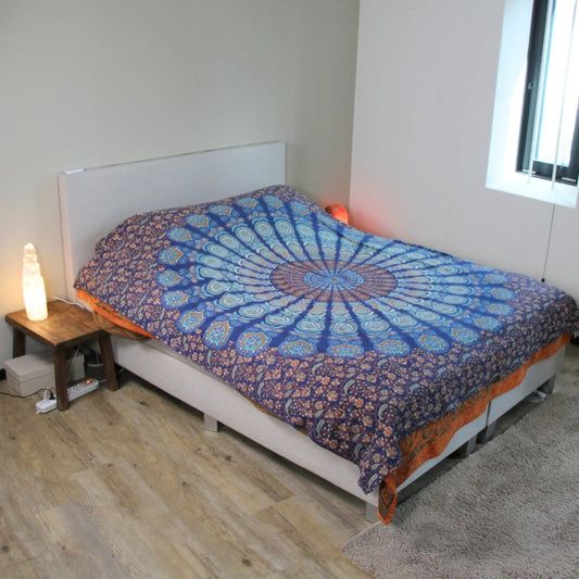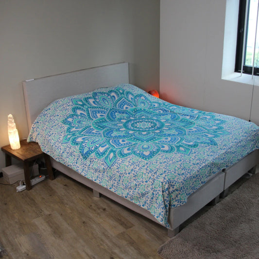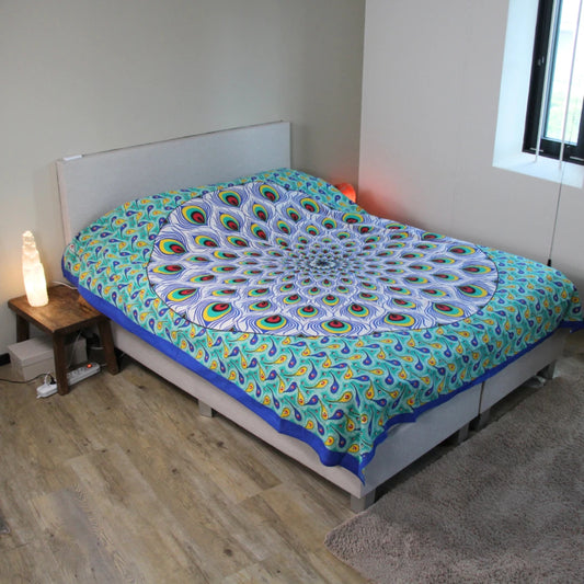 ๐ฆ Boho Breeze โ Grandfoulard Mandala Pauwveren Blauw & Groen (230 x 200 cm)