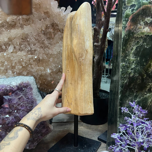 Versteend Hout Sculptuur op Voet โ Aarding, Stilte & Tijdloze Kracht