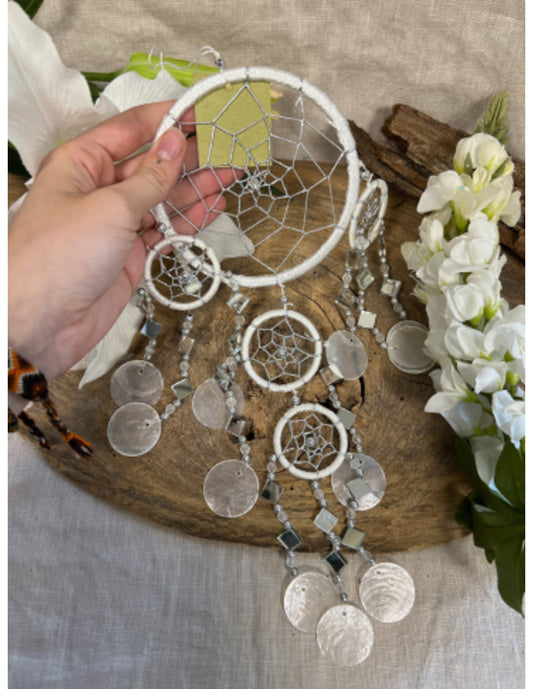 🕊️ Dromenvanger met Spiegels 22 cm – Wit & Spiritueel Beschermend