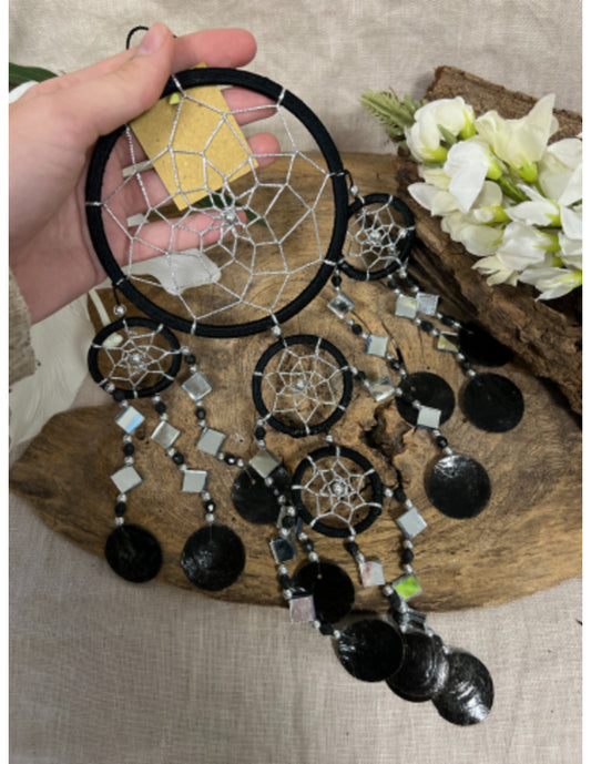 🖤 Dromenvanger Spiegel-Schelp Zwart 11 cm – Mystiek & Bescherming