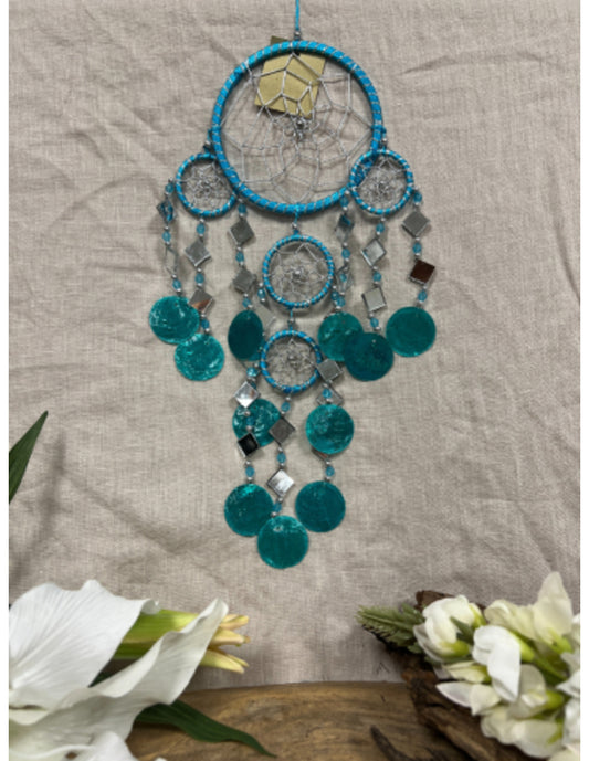 ✨ Dromenvanger Spiegel-Schelp Turquoise 11 cm – Bescherming & Tijdloos Design