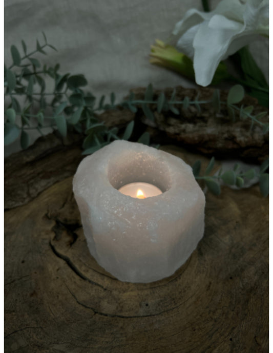 ✨ Witte Himalaya Zoutsteen Theelichthouder – Sfeer & Zuiverheid