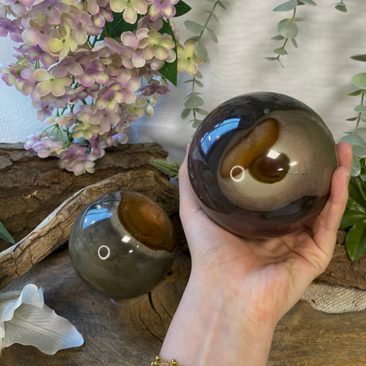 🌈 Polychroom Jaspis Edelsteenbol (9,5 cm) – Madagaskar