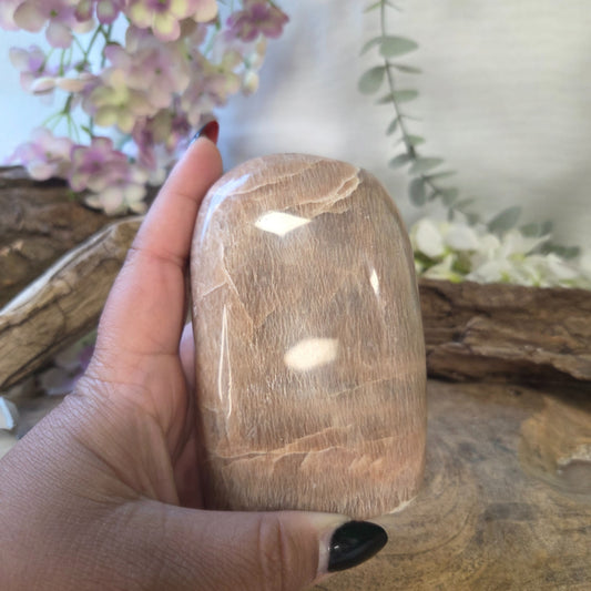 🧡 Oranje Maansteen Sculptuur – Gepolijst uit Madagaskar (ca. 500–600 g / 9 cm)