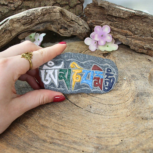 🪨 O Mani Steen – ca. 10 cm | Handgemaakt Symbool van Compassie