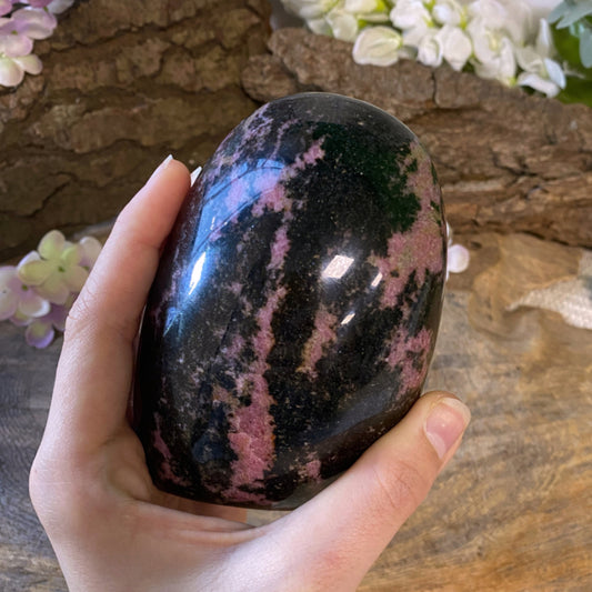 💖 Rhodoniet Sculptuur – 10,5 cm | Steen van Zelfliefde & Herstel