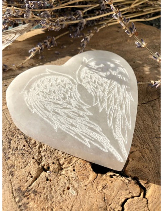 Seleniet Oplaadsteen – Hartvorm met Engelenvleugel 🤍✨