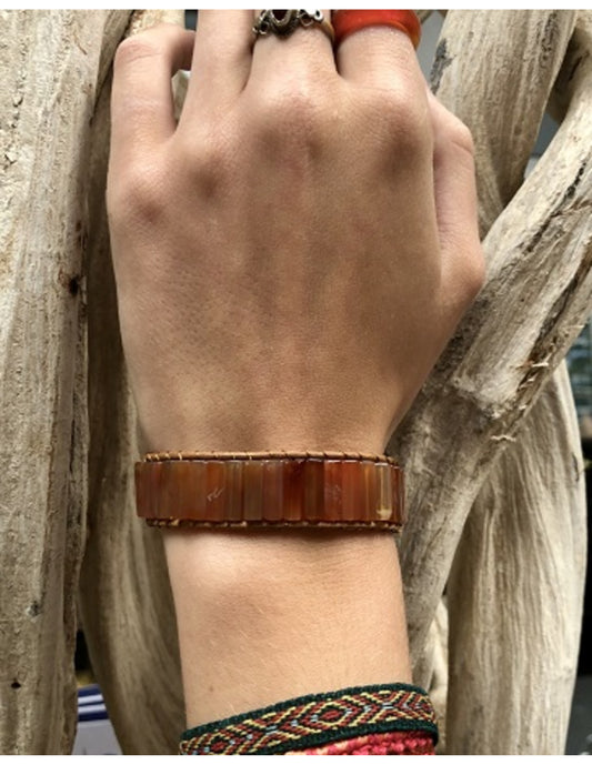 ๐ฅ Leren Armband Gipsy-Style met Carneool โ Kracht, Motivatie & Creativiteit ๐ฅ