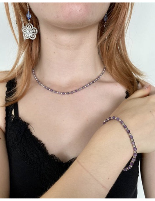 💜 Amethist Armband met Zilverkleurige Tussenkraaltjes (19–23 cm)