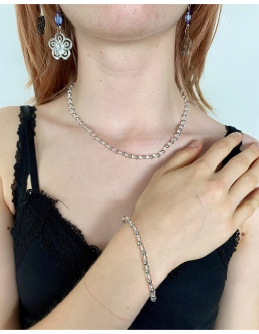 💎 Bergkristal Armband met Zilverkleurige Tussenkraaltjes (19–23 cm)