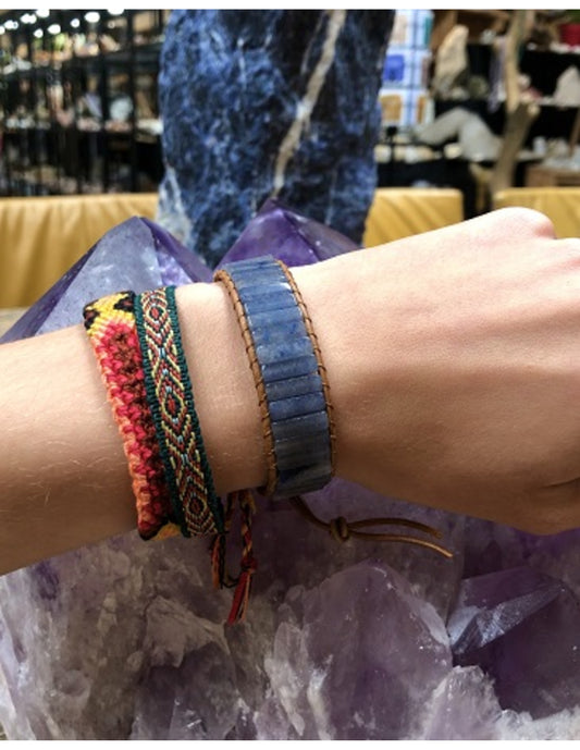 🔵 Leren Armband Gipsy-Style met Blauwe Kwarts – Balans, Energie & Helderheid 🔵