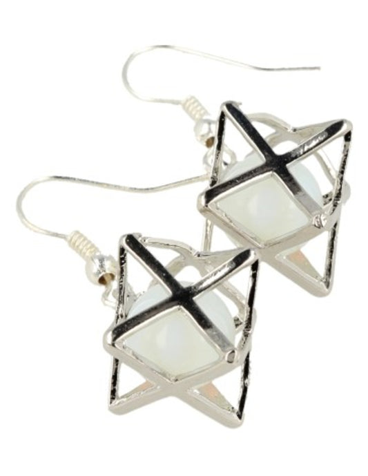 Merkabah Oorbellen – Opaliet (synth) in een mystiek kooitje