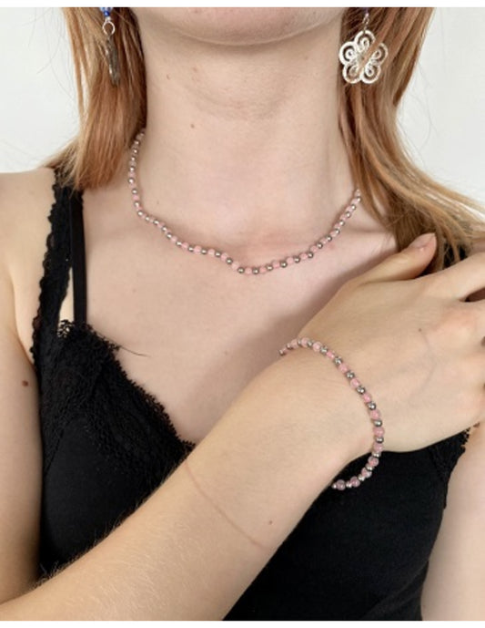 💗 Roze Kwarts Armband met Zilverkleurige Tussenkraaltjes (19–23 cm)