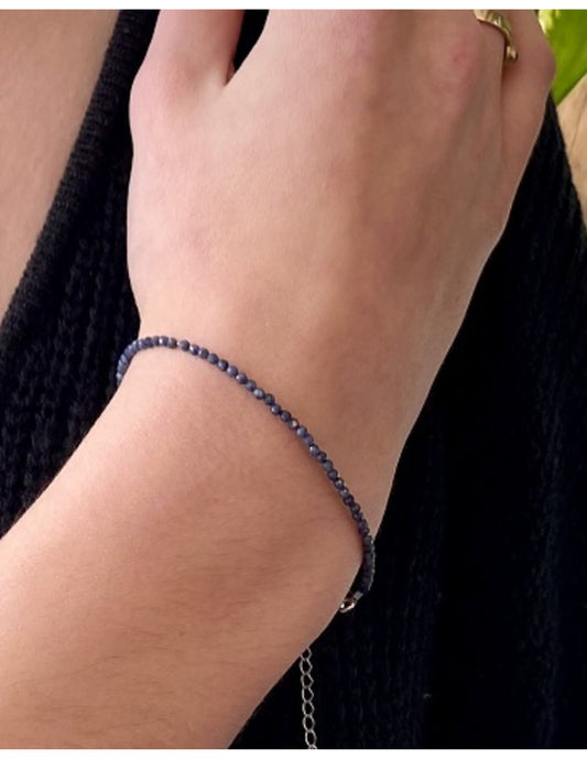 🌌 Labradoriet Armband met Zilverkleurige Tussenkraaltjes (19–23 cm)
