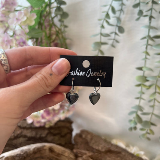 🖤 Hematiet Hartjes Oorbellen – Aarding & Stijl (ca. 2 cm)