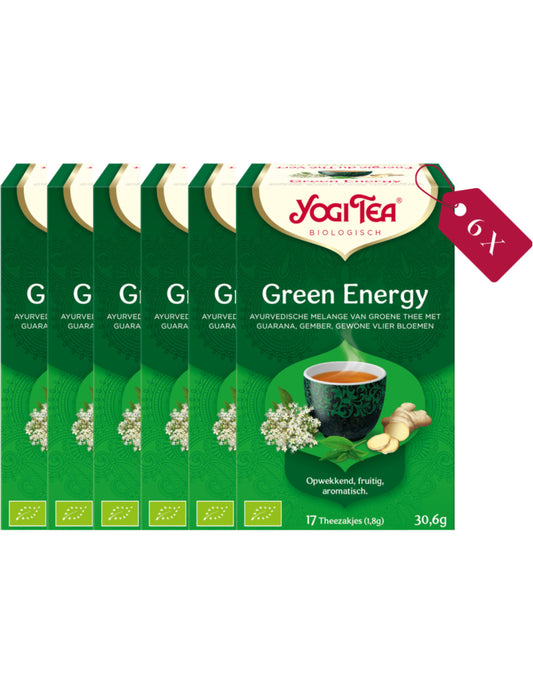 🍃 Yogi Tea Green Energy – Tray van 6 Pakjes (102 theezakjes totaal)