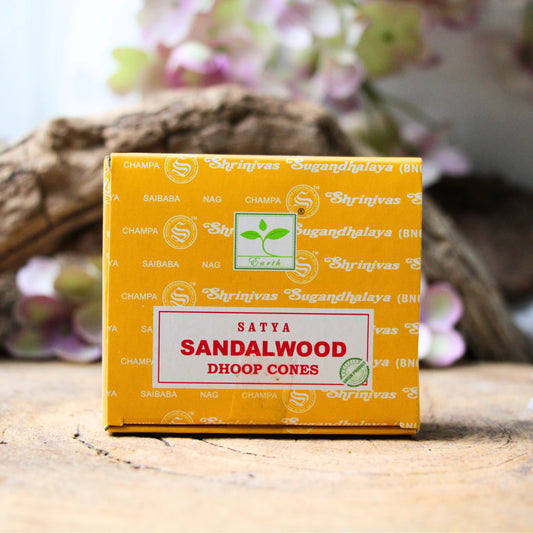 π² Satya Sandalwood Wierookkegels β Houtachtig, Kalmerend & Spiritueel (12 stuks)