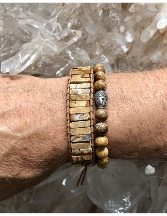 Leren Armband Gipsy-Style met Landschaps Jaspis – Balans en Kracht in Elke Maat