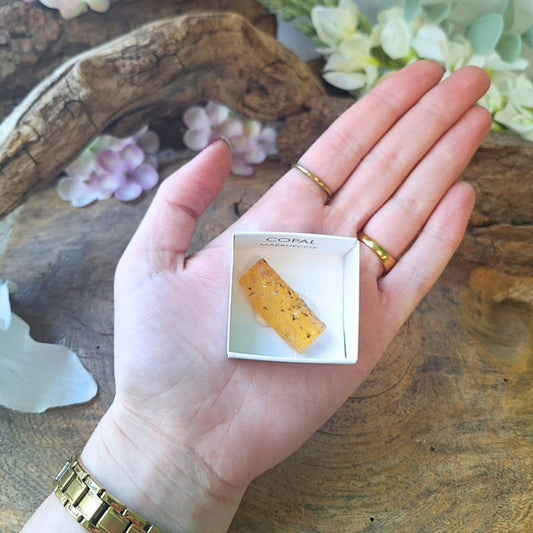 🌿 Doosje Copal Edelsteen – 4 x 4 cm – Zuivering & Bescherming 🔥